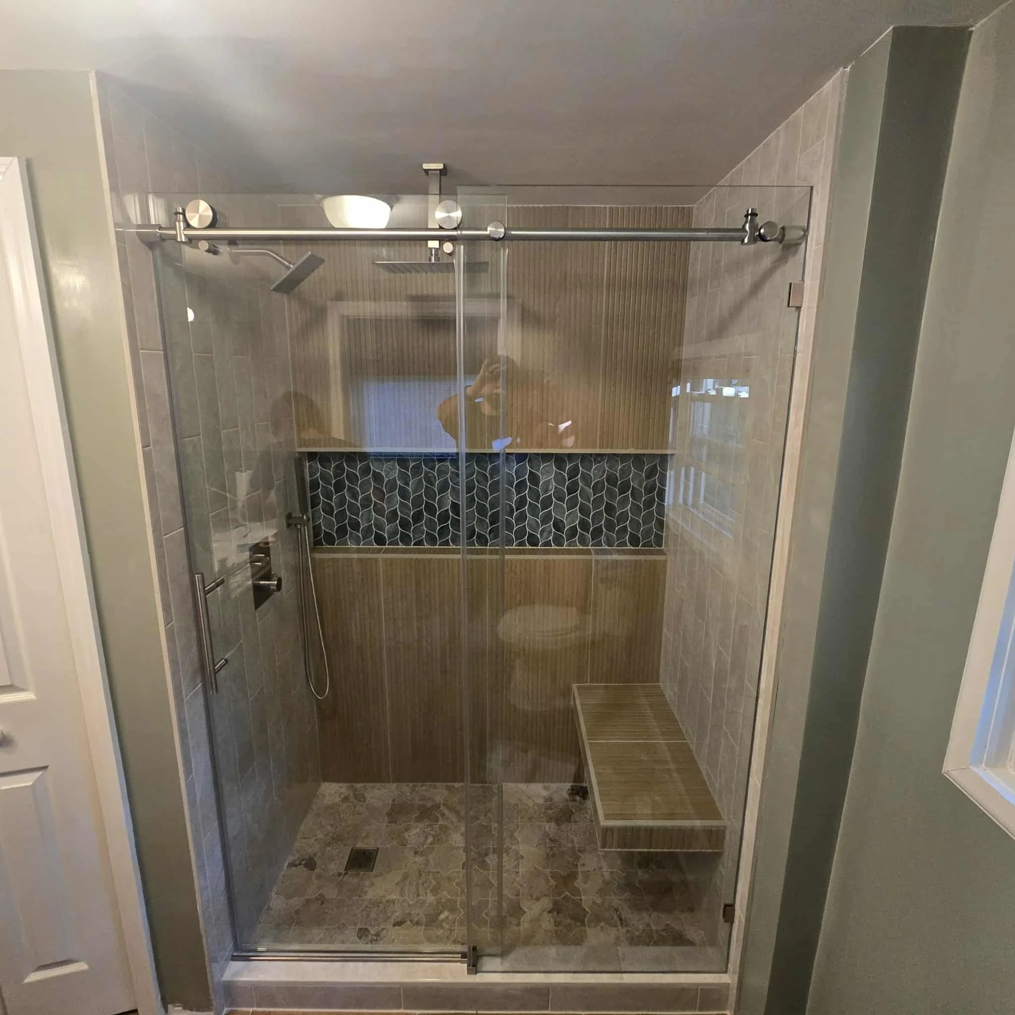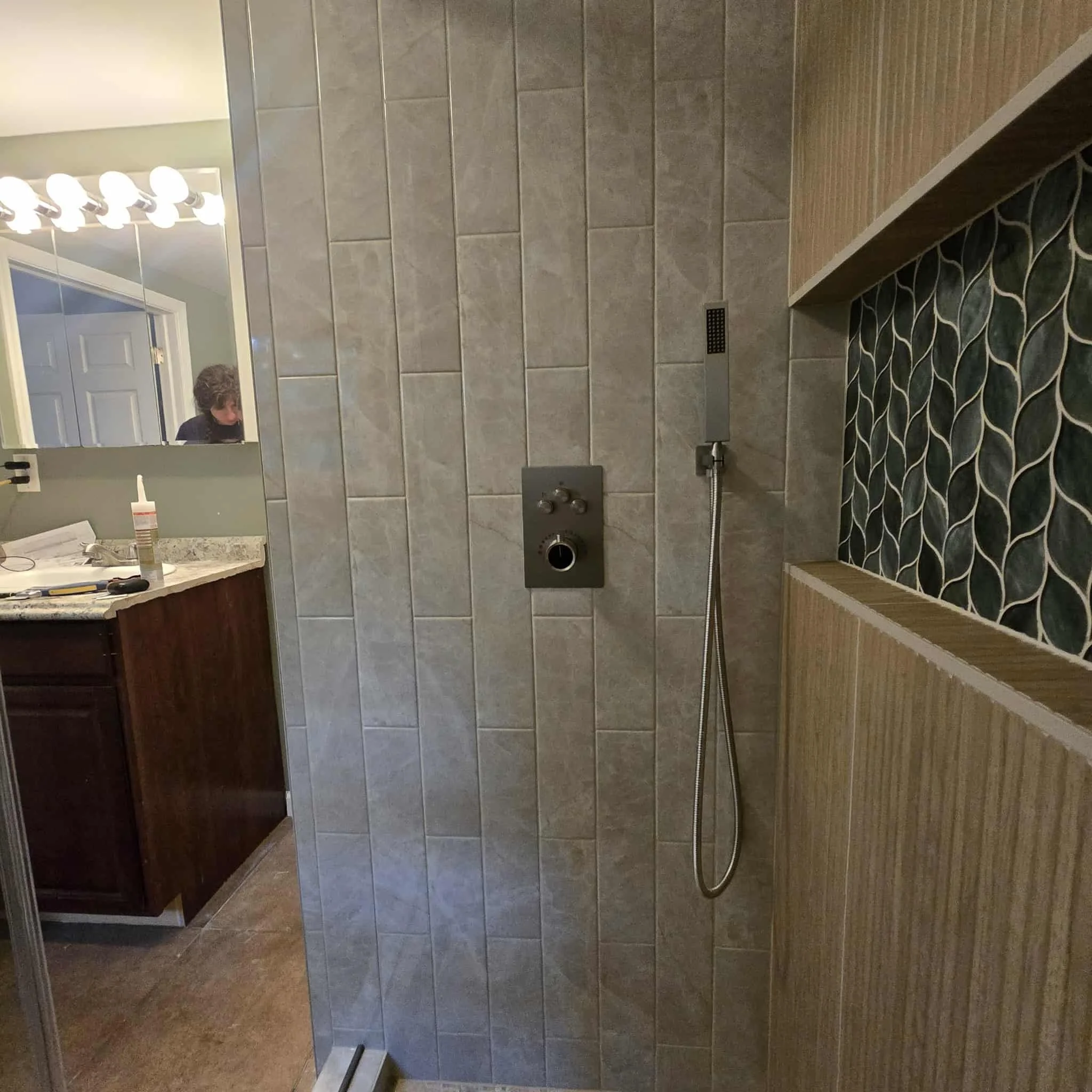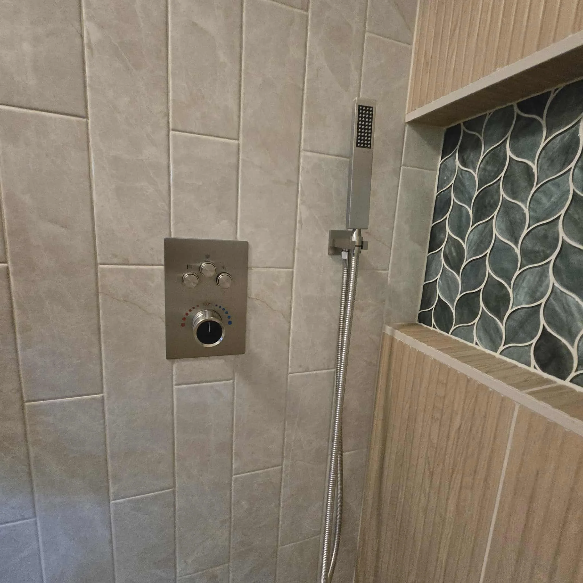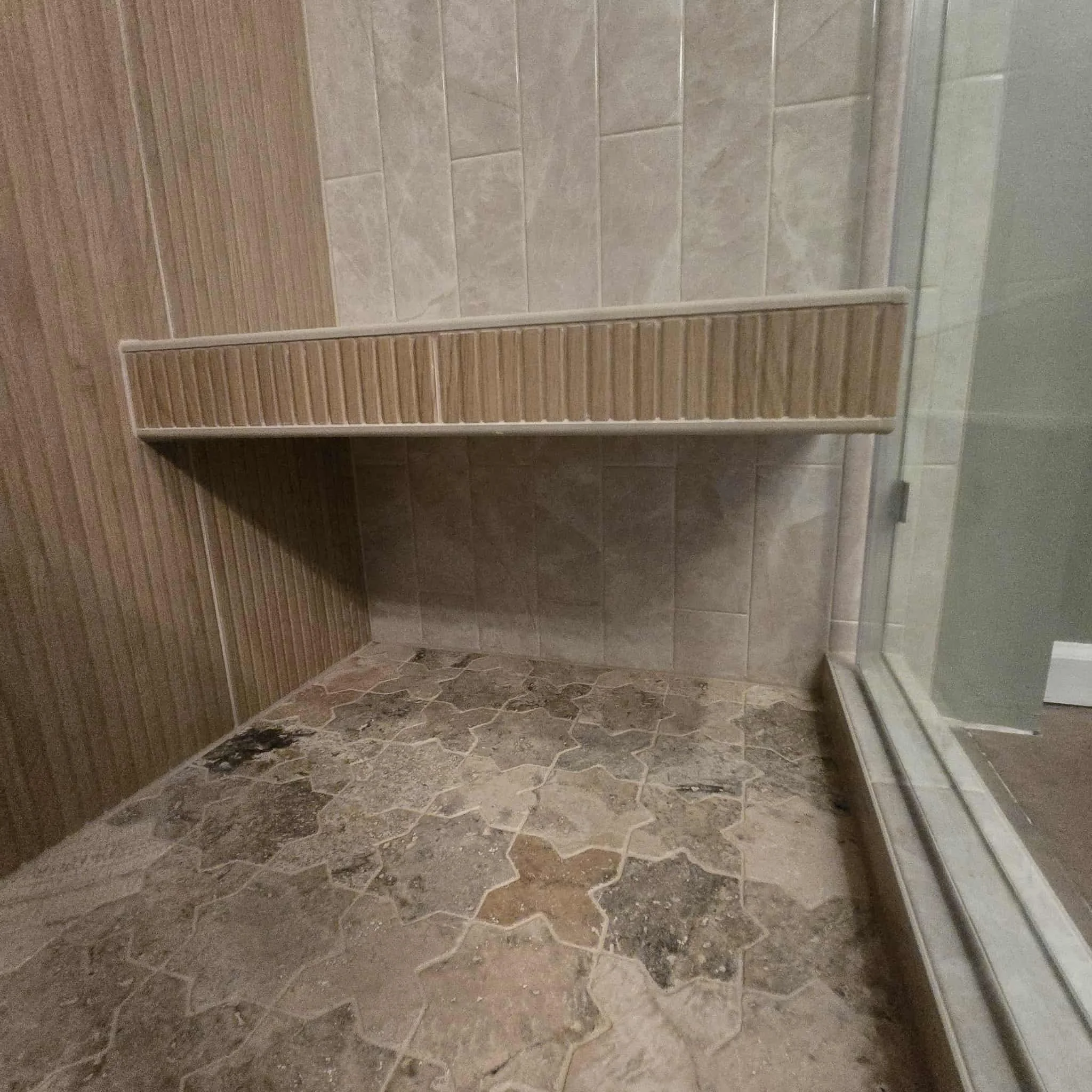This shower was as challenging as it is beautiful. What started as a quick DIY before a house flip, turned into an elegant jungle themed walk in shower. upon demo, we found multiple issues typically found in a quick DIY. We safely buttoned up all the existing issues, and played off the earth tones in the bathroom, to bring this jungle shower to life, and to be enjoyed for many years to come