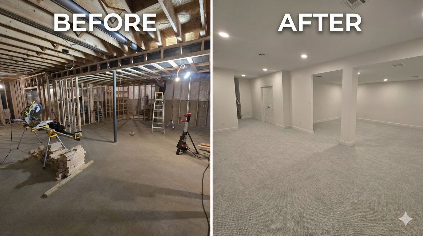 Walkthrough of a fully finished basement in West Chester Pennsylvania